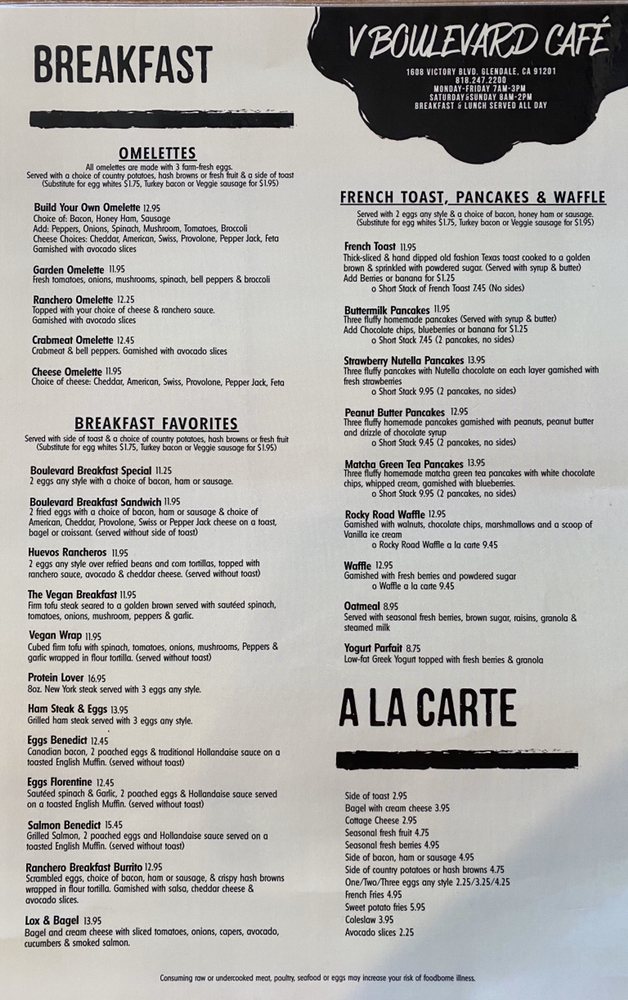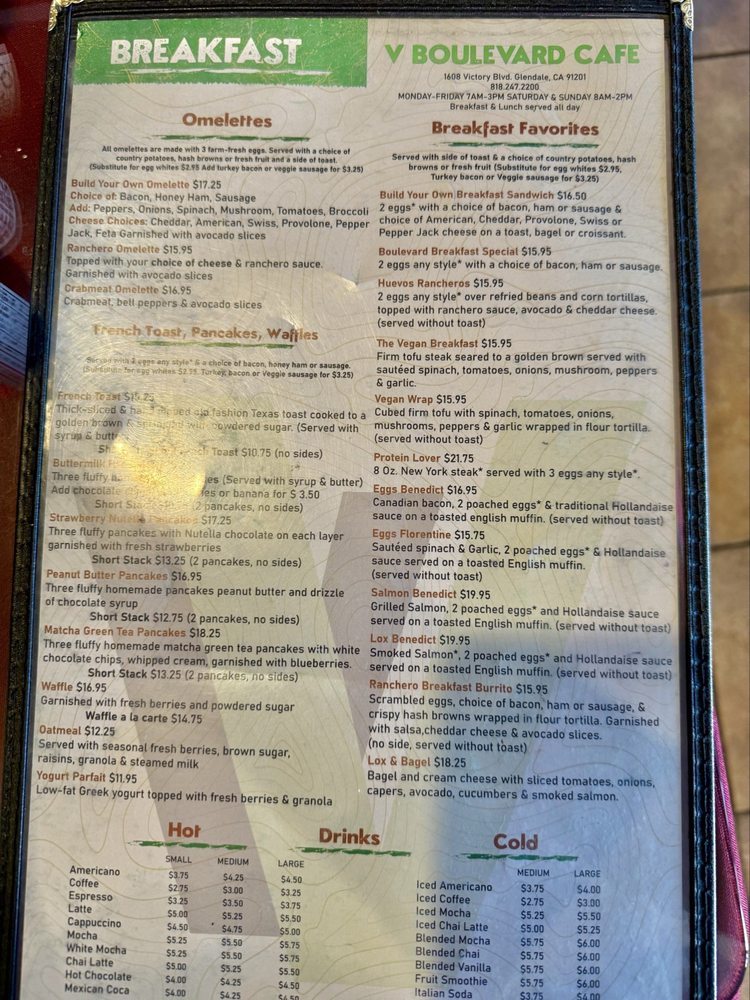 Welcome to V Boulevard Cafe, a charming spot located at 1608 Victory Blvd in Glendale, CA, perfect for breakfast and brunch lovers. Known for its delightful menu, V Boulevard Cafe excels in transforming classic morning favorites into extraordinary dishes.